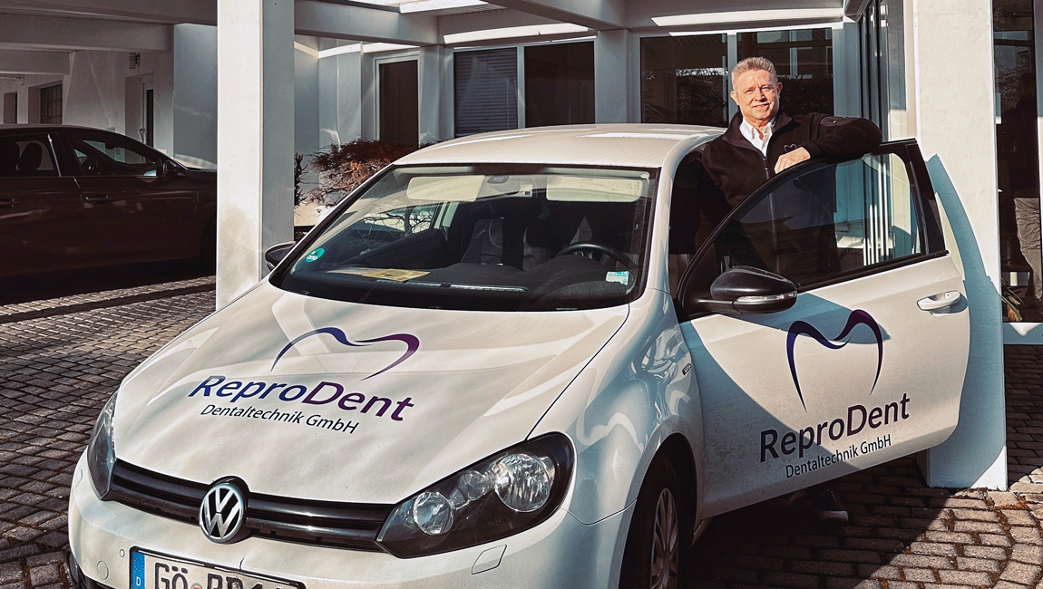 Zur Geschichte des Fahrzeugs gehört auch der Fahrer: Andreas hat es über viele Jahre sicher zu den Kundinnen und Kunden gesteuert und unterstützt ReproDent auch im Ruhestand weiter in Teilzeit. Diese Verbundenheit ist kein Zufall. Sie steht für ein Unternehmen, in dem Kontinuität, Erfahrung und Verlässlichkeit gelebt werden. Und genau diese Werte prägen auch die Zusammenarbeit mit den Praxen: persönlich, nahbar und lösungsorientiert.